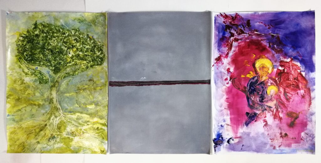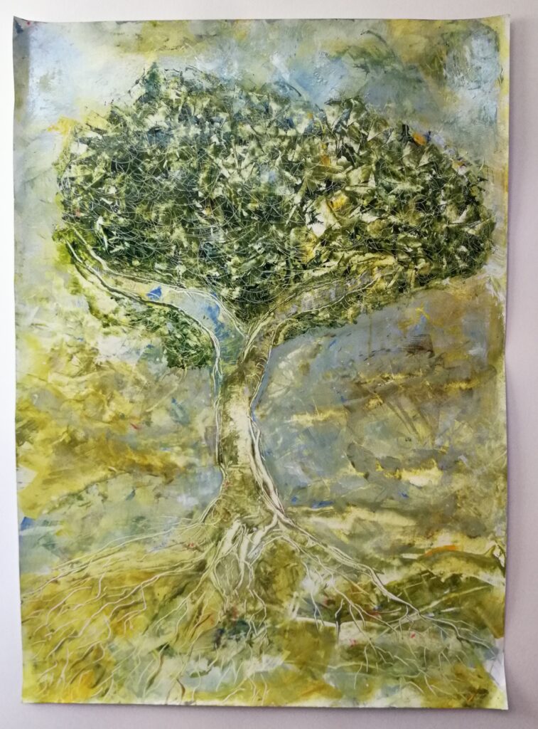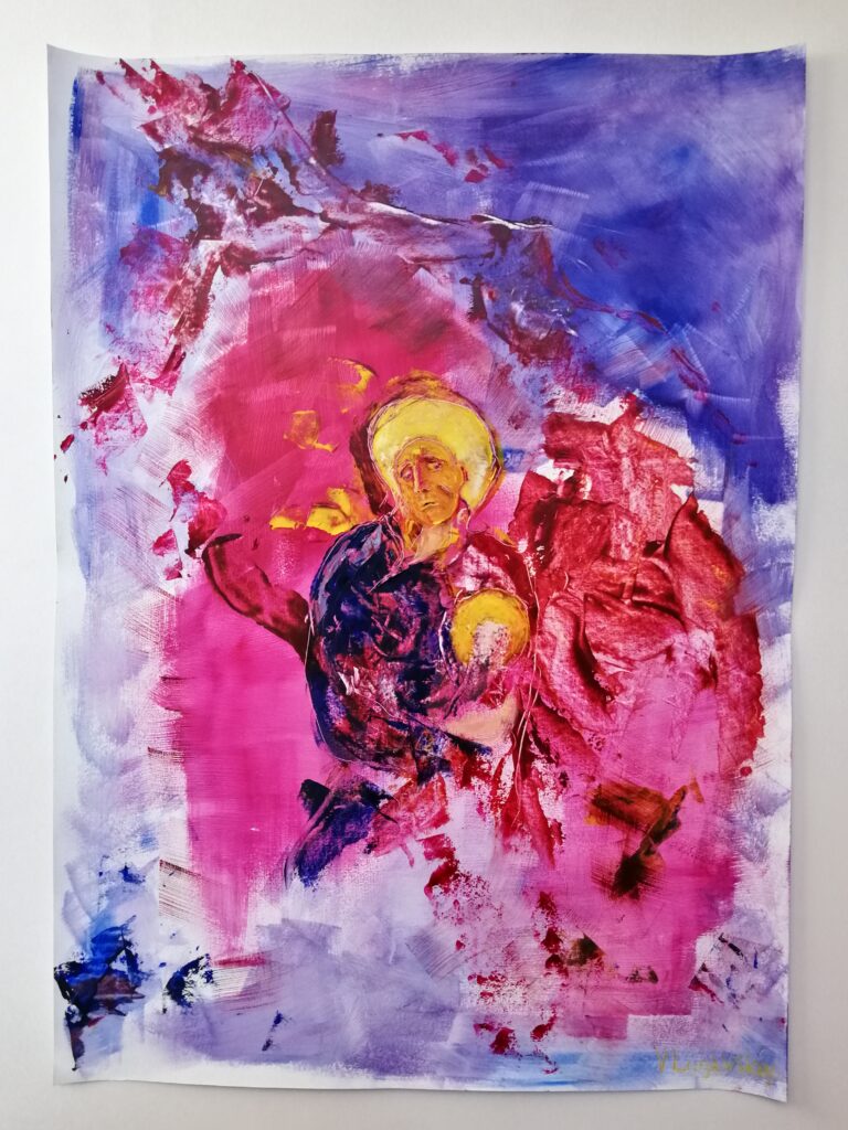 La vita, Olio su carta, mix medium, 50×70 cm., 2023